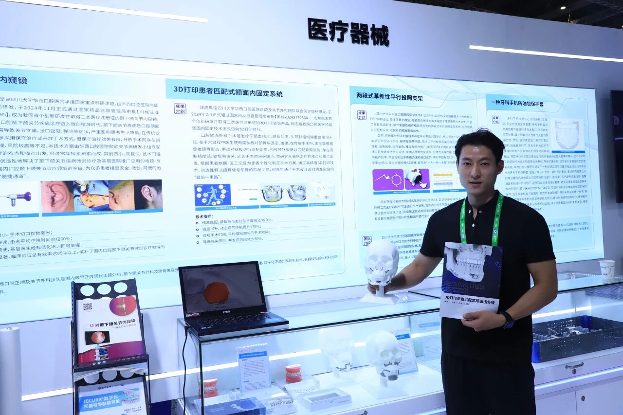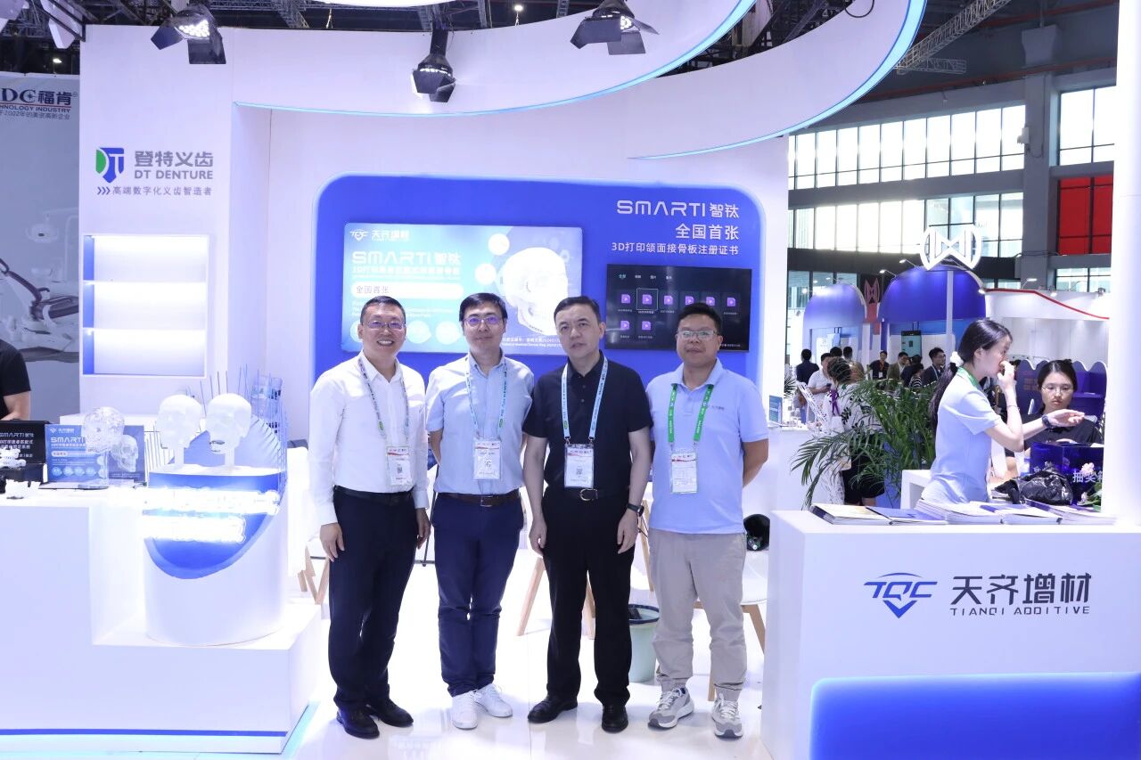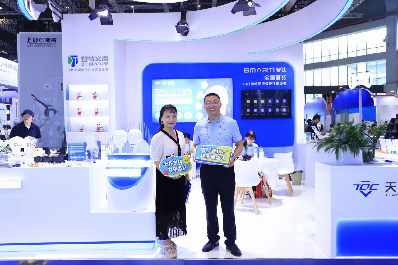 本次展会中,天齐增材与四川大学华西口腔医院、空军军医大学第三附属口腔医院联合设置的展区成为一大亮点,多项医工协同创新成果集中亮相,充分体现了临床与产业深度融合的领先价值。