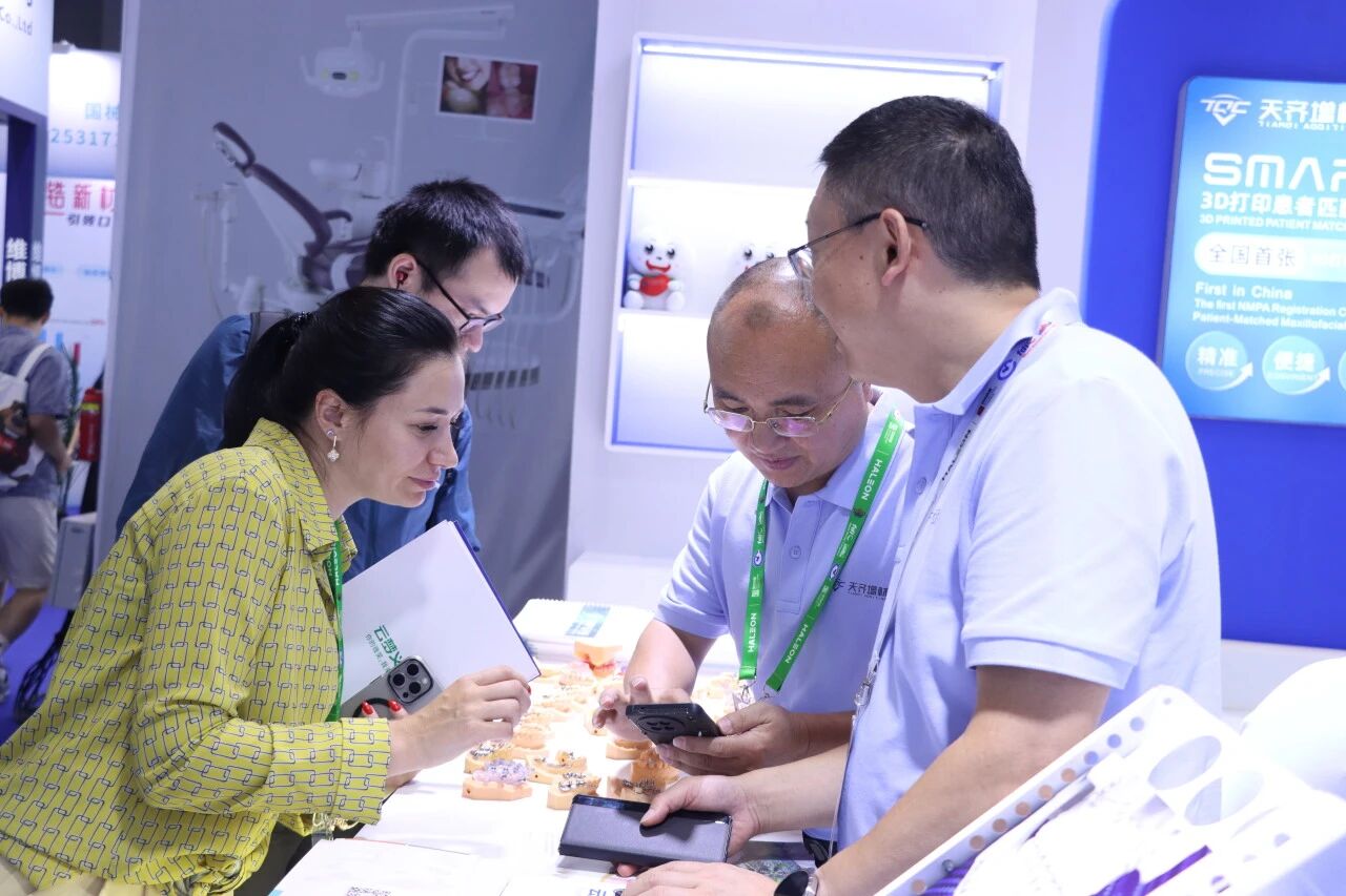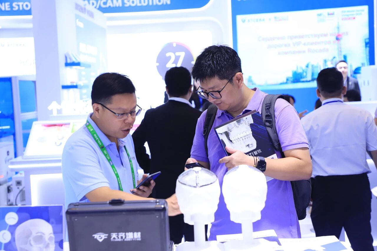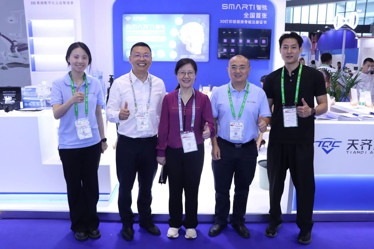 本次展会中,天齐增材与四川大学华西口腔医院、空军军医大学第三附属口腔医院联合设置的展区成为一大亮点,多项医工协同创新成果集中亮相,充分体现了临床与产业深度融合的领先价值。