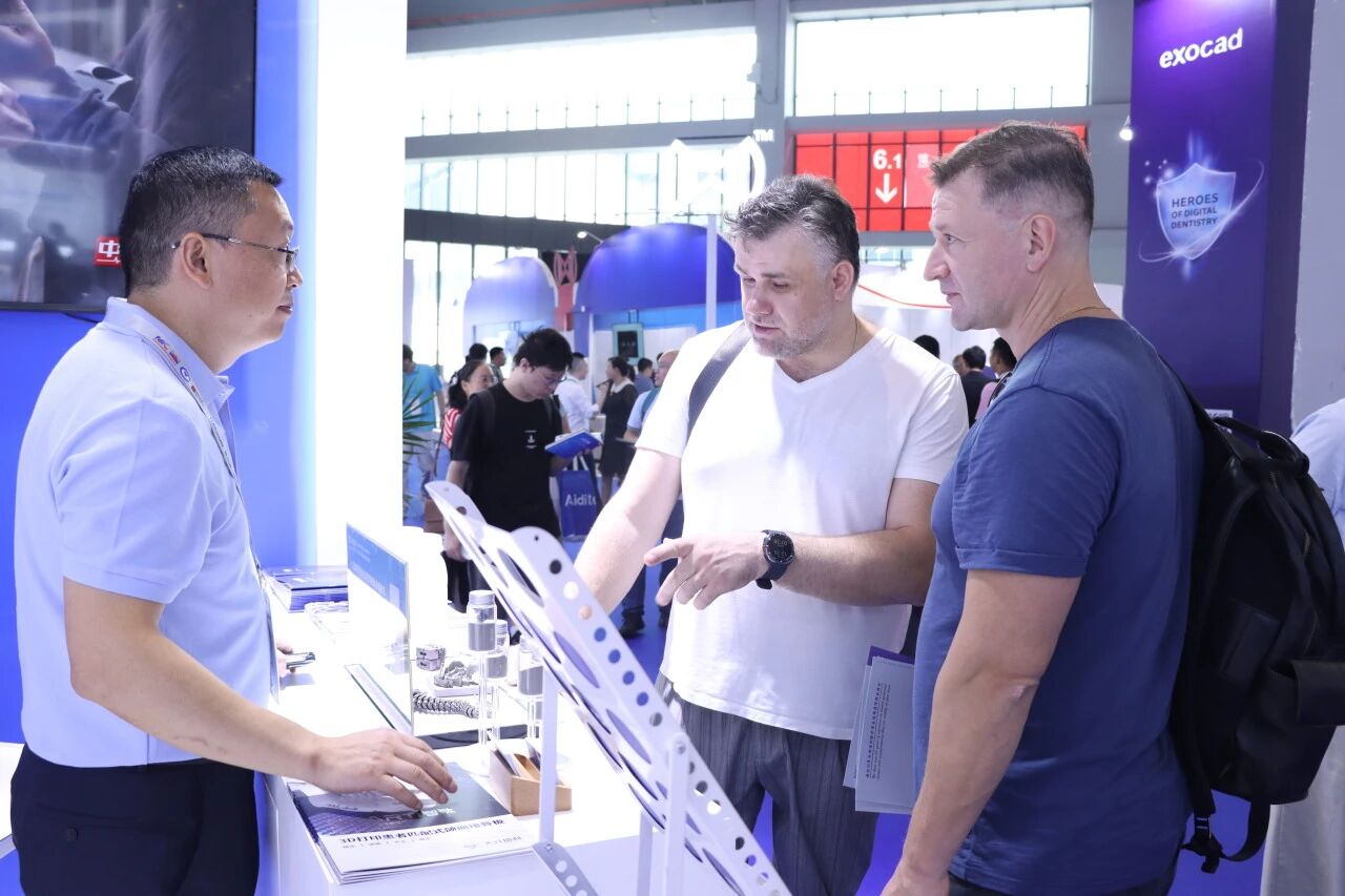 天齐增材携子公司登特义齿、优材科技参加本届大会,全面展示智钛®、太孚美®、登特义齿®等核心品牌的最新研发成果。展会期间,多位中华口腔医学会及知名院校领导、专家莅临指导,就行业趋势和技术创新进行了深入交流,对展出的创新成果予以赞赏和肯定。